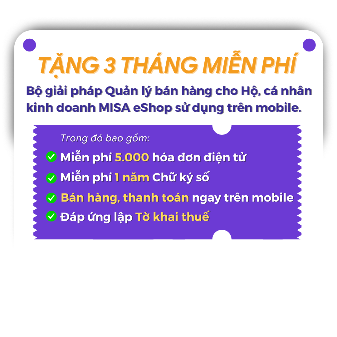 * Dành tặng cho 2 triệu Hộ kinh doanh - Quý khách hàng không cần trả thêm bất kỳ khoản chi phí nào để được nhận phần mềm miễn phí 3 tháng từ MISA.